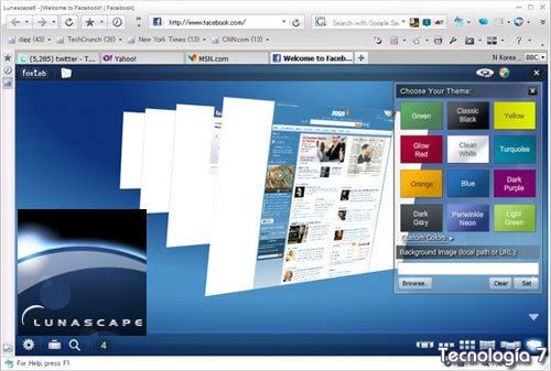 Lunascape podemos utilizar los motores de navegación de los cuatro browsers IE (Trident), FF (Gecko), Safari y Chrome (Webkit). Este multi-navegador está disponible en version full (para escritorios) y standard (para utilizarlo en móviles).